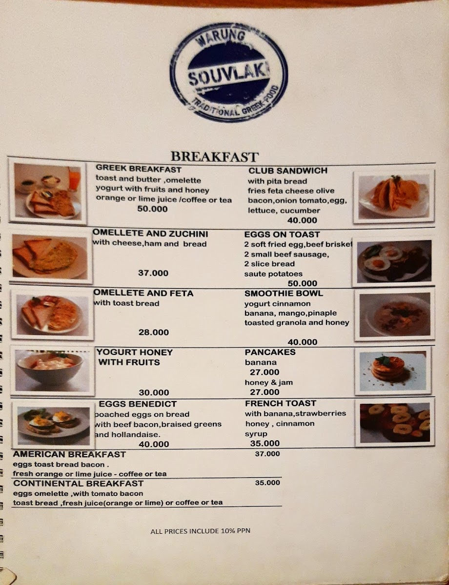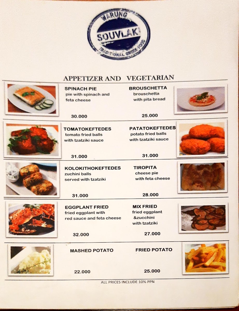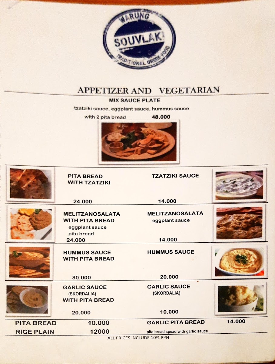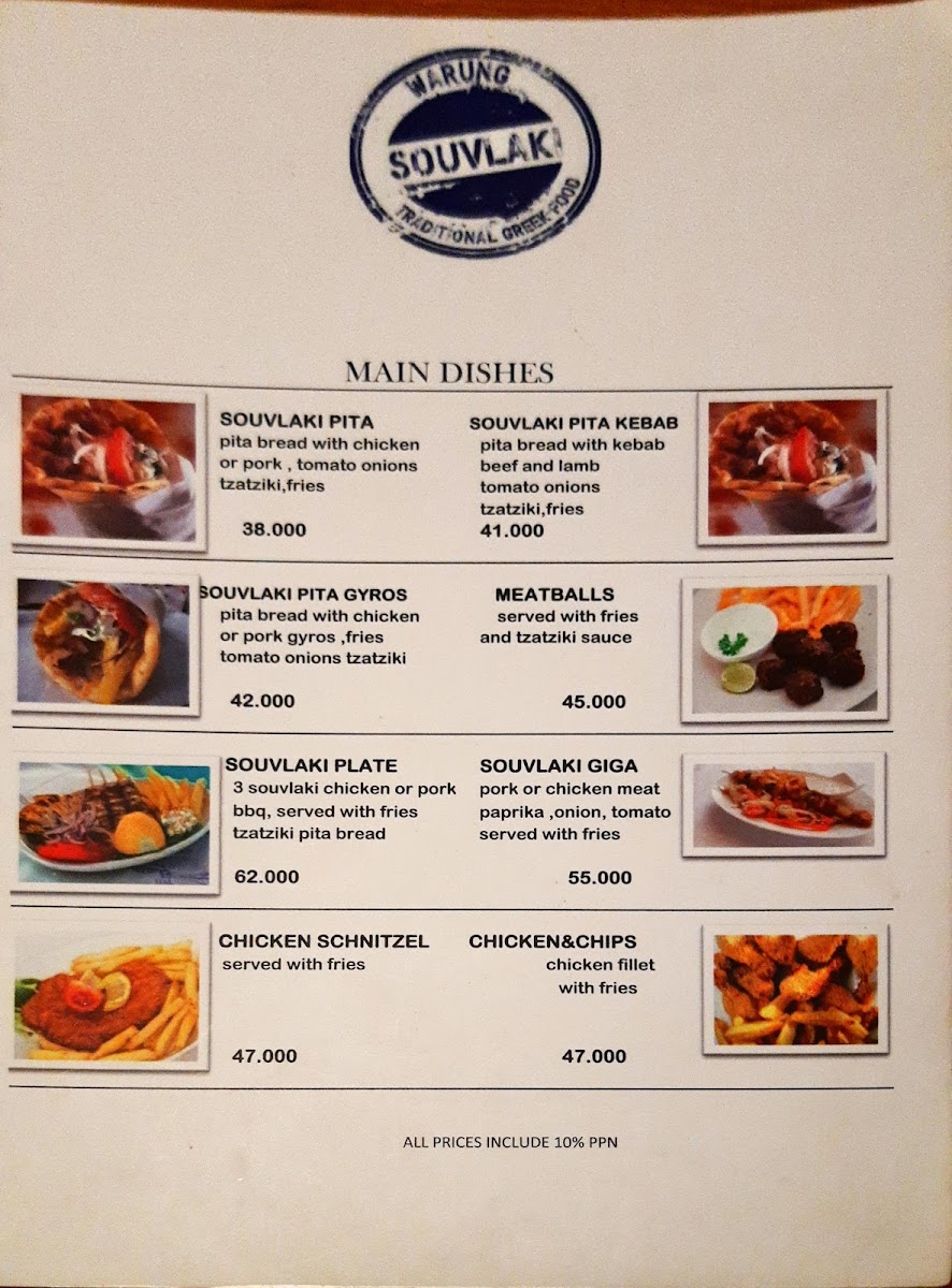 Milos warung souvlaki Menu
